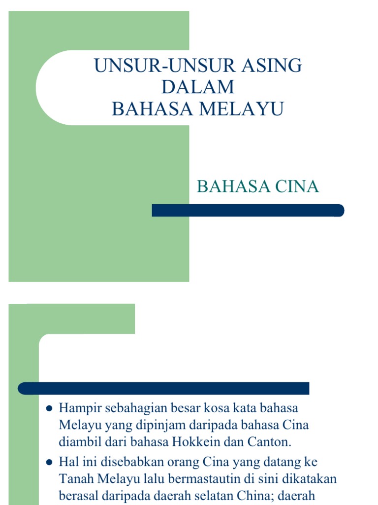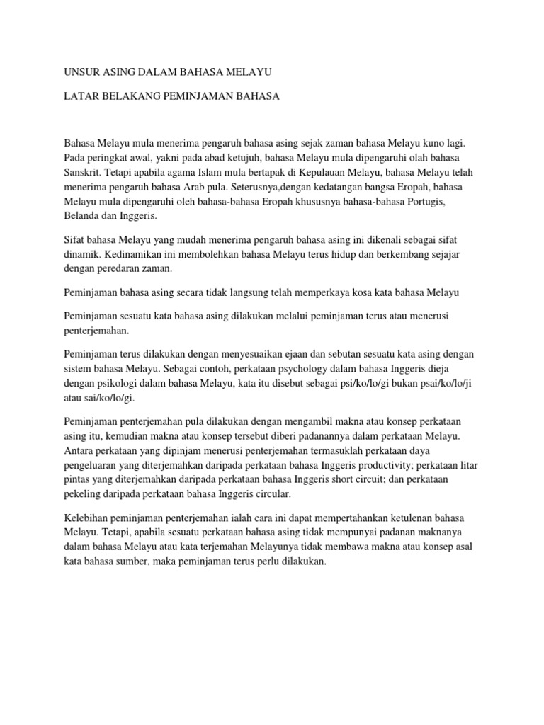 Dalam hal ini, penyerapan diusahakan agar ejaannya diubah. Bahasa melayu hjh samiah samari latar belakang peminjaman bahasa bahasa melayu mula menerima pengaruh bahasa asing sejak zaman bahasa melayu kuno lagi. Tip skor a dalam spm bahasa melayu. Permasalahan kajian unsur unsur asing dalam bahasa melayu. بهاس ملايو) mencakup sejumlah bahasa yang saling bermiripan yang dituturkan di wilayah nusantara dan di semenanjung melayu.