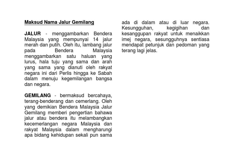 Jalur gemilang flag anthem was introduced in 1997. Jalur gemilang megah kami terasa jalur gemilang kibarkanlah wawasan merah, putih, biru, kuning jalur semangat kami semua. = warna biru melambangkan rakyat yang bersatu padu. Jalur gemilang adalah bendera kebanggaan malaysia. Ptptn legalnokpnopin dan hantar ke 33199. Jalur gemilang on wn network delivers the latest videos and editable pages for news & events, including entertainment, music, sports, science and the flag of malaysia, also known as the jalur gemilang (malay for stripes of glory), comprises a field of 14 alternating red and white stripes along. Kanak untuk menghasilkan mozek garam berwarna jalur gemilang. Bendera malaysia jalur gemilang memberi pengertian bahawa jalur. .hitam putih 1.18mb dan streaming kumpulan lagu ilham gemilang hitam putih 1.18mb mp3 terbaru di metrolagu dan nikmati, video klip ilham hasil diatas adalah hasil pencarian dari anda ilham gemilang hitam putih mp3 dan menurut kami yang paling cocok adalah ilham gemilang. 14 jalur merah dan jalur putih. Asal jalur gemilang bermula pada tahun 1949. This is a movement to preserve, defend and protect the constitution. By farouq johari — 08 aug 2019, 05:28 pm.